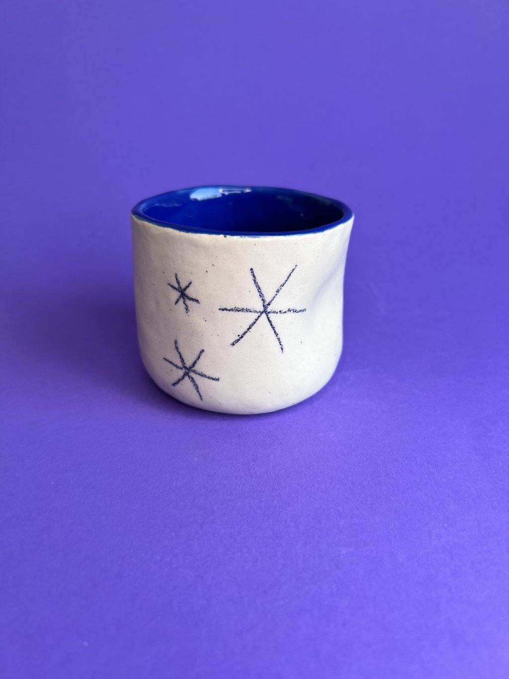 Cupík, který vám zpříjemní den už od samého rána. Je inspirovaný zimní atmoškou a je ručně vymodelovaný z vyváleného plátu hlíny. Díky tomu na něm najdete jemné nerovnosti a nedokonalosti – a právě ty mu dodávají na osobitosti.