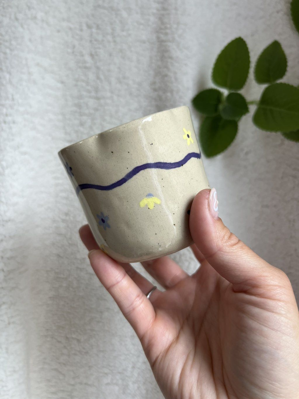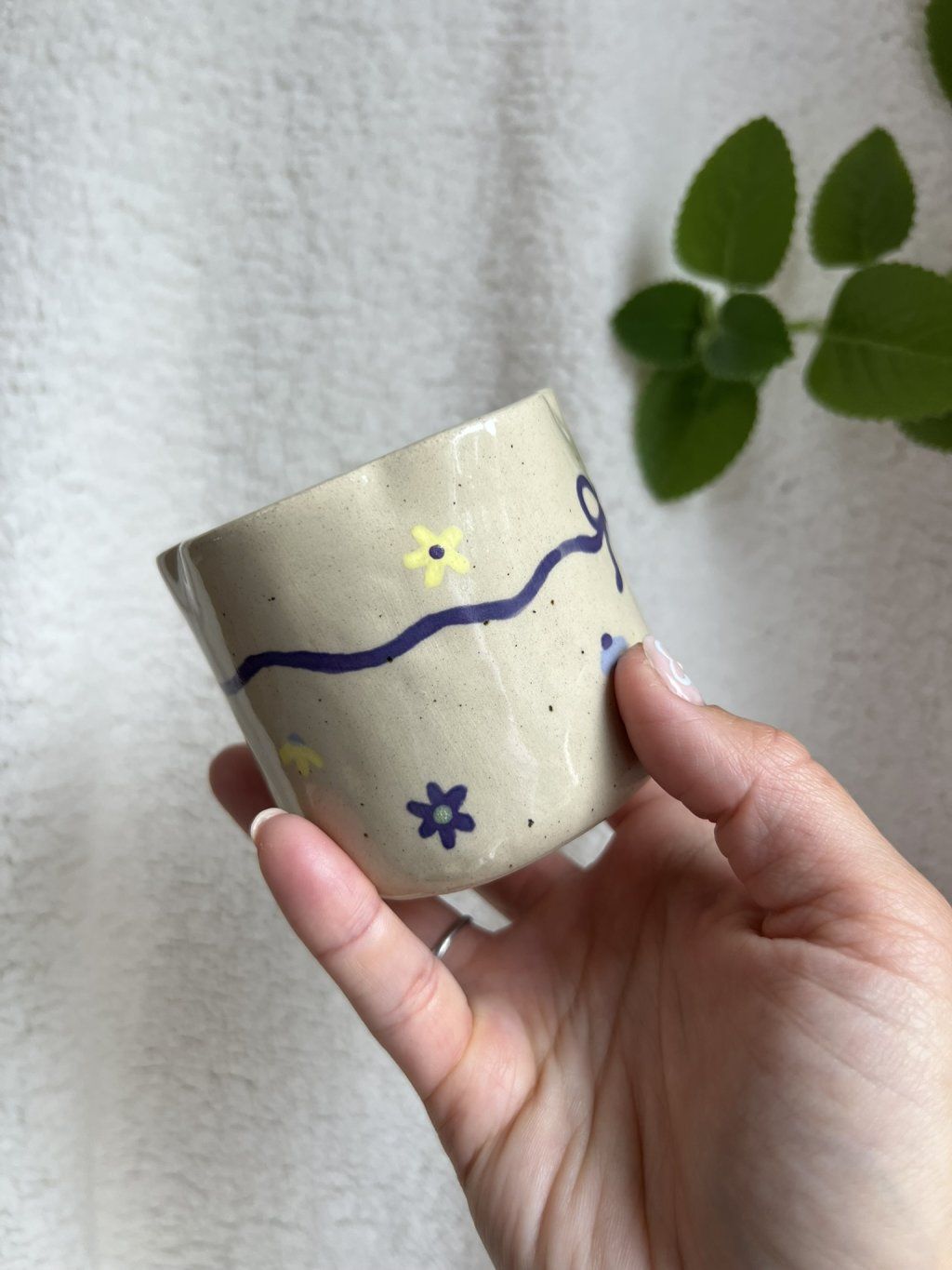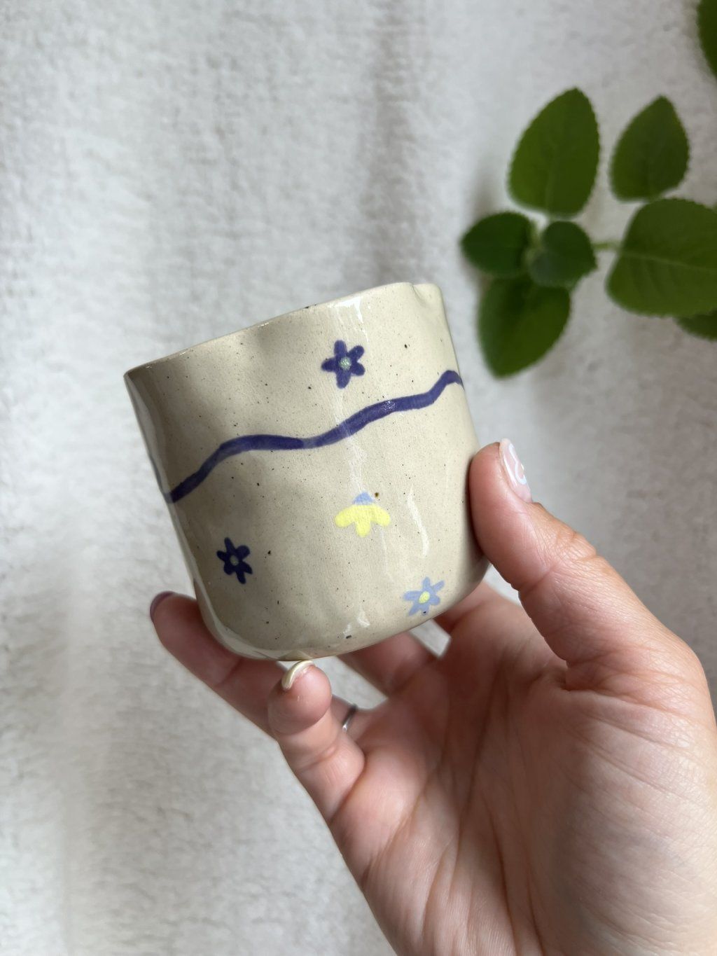 Každý kousek je ručně vymodelovaný z vyváleného plátu hlíny, takže nenajdete dva úplně stejné. Jemné nerovnosti a drobné nedokonalosti nejsou chybou – jsou podpisem ruční práce a dělají z každého hrnku originál.