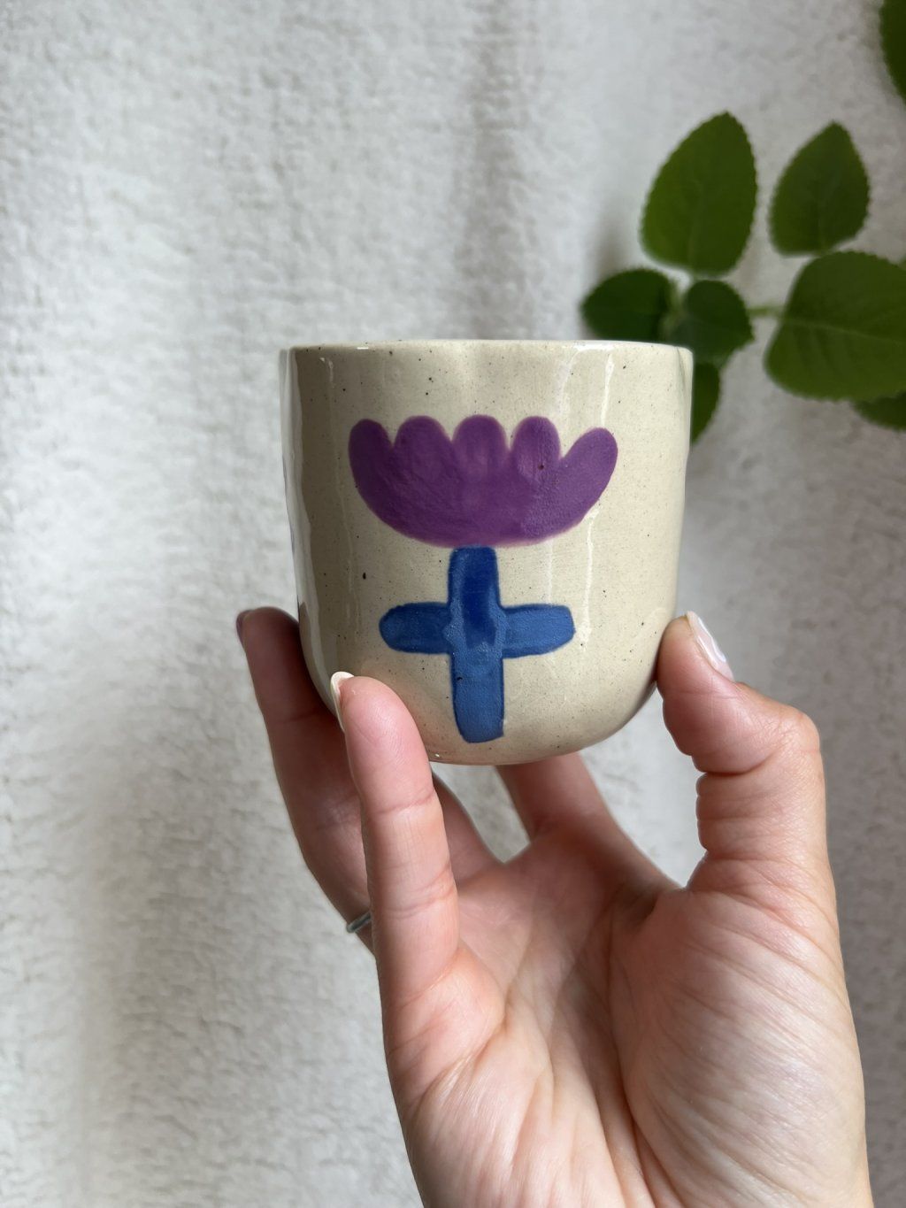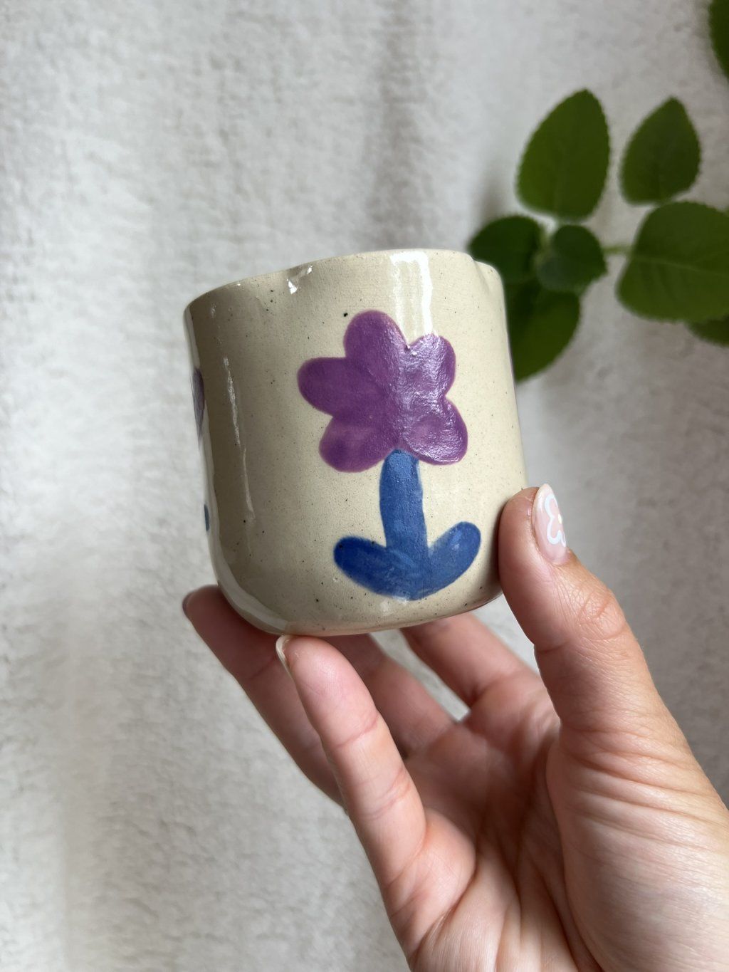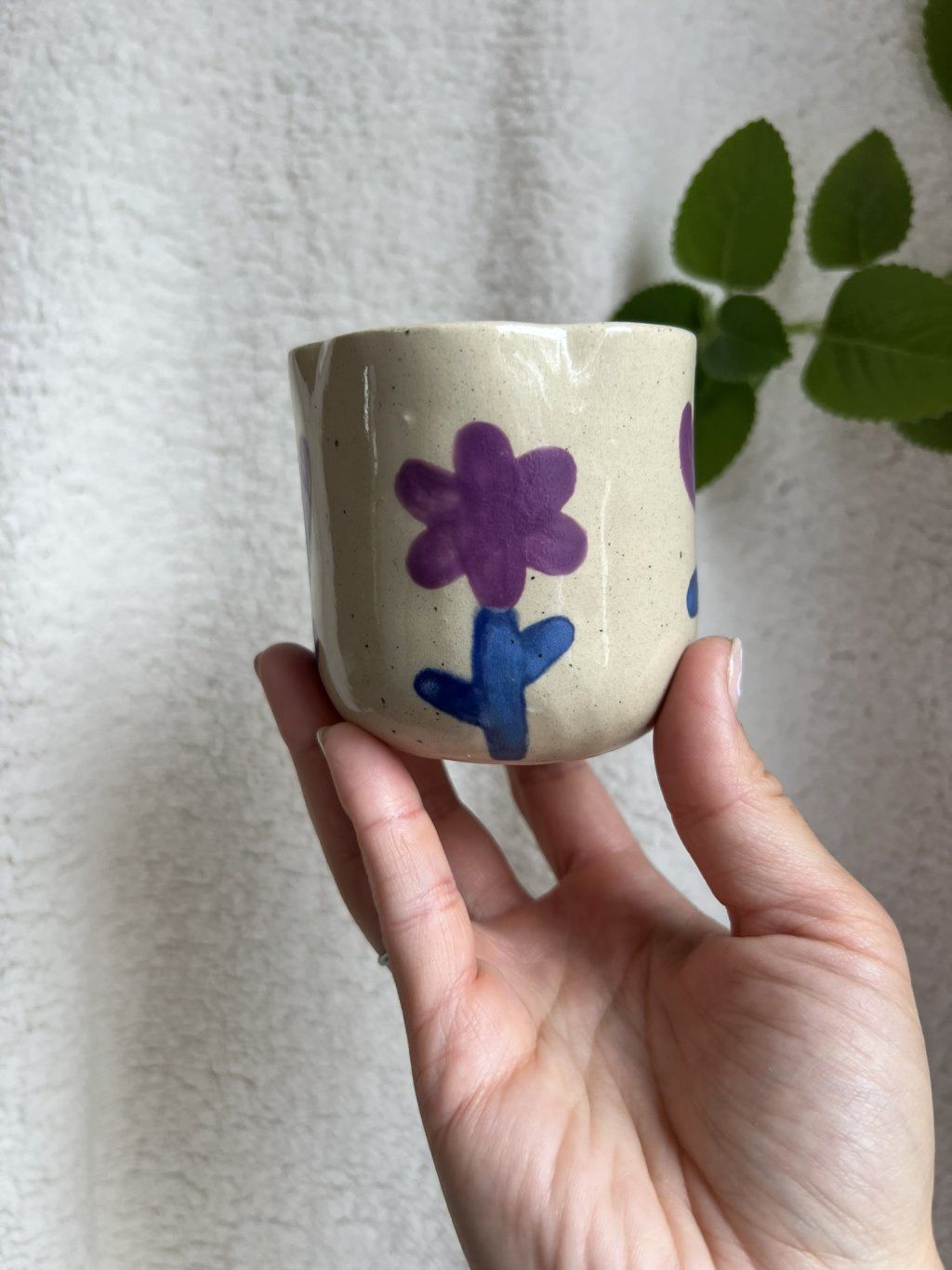 Hravý cupík s květinovým motivem, který vnese do každého dne malý kousek radosti. Je ručně tvarovaný z plátu hlíny, takže každý kus je originál a nese v sobě jedinečný otisk ruční práce. Jemné nerovnosti a drobné detaily mu dodávají přirozený, osobitý charakter. Ideální pro chvíle, kdy si chceš zpomalit a užít si svůj čaj nebo kávu trochu jinak...