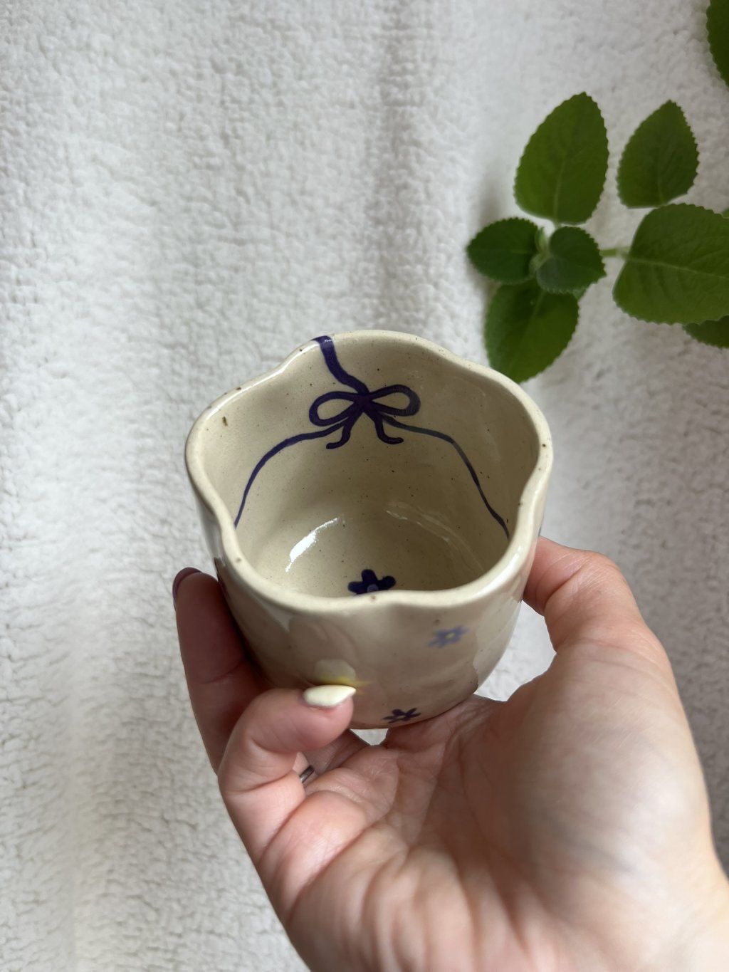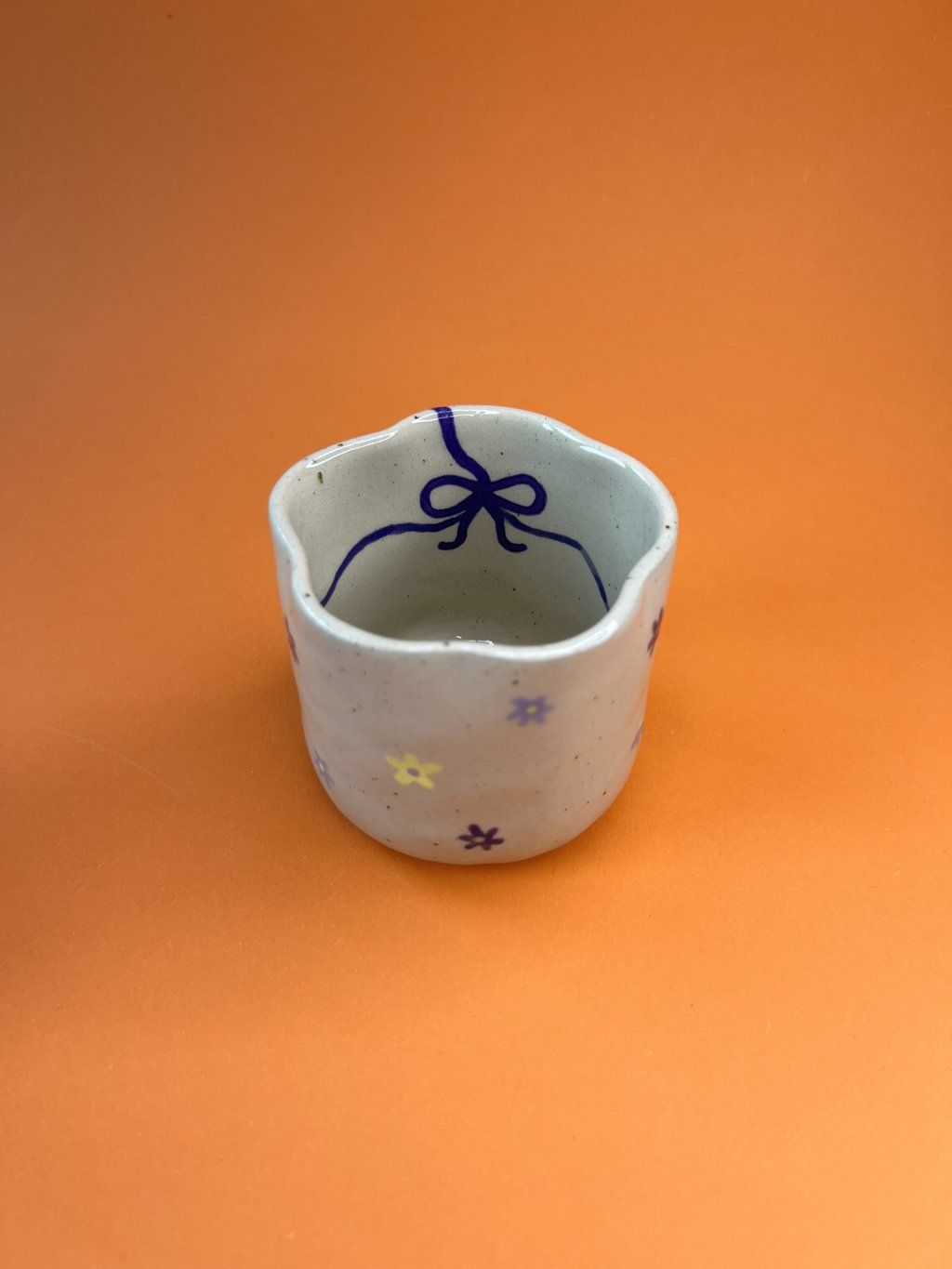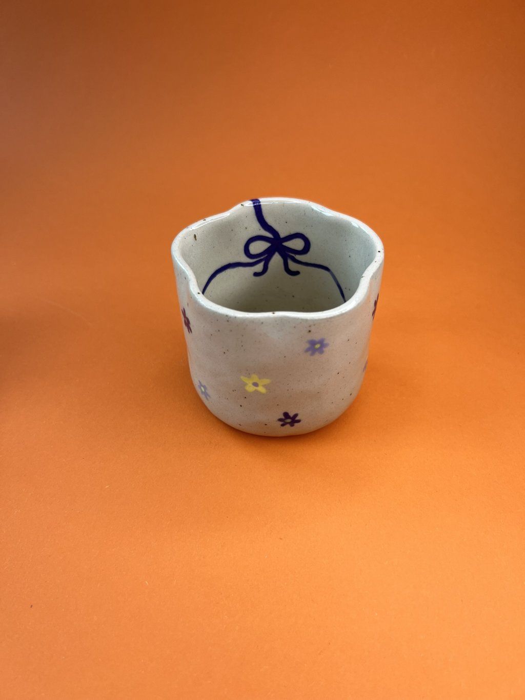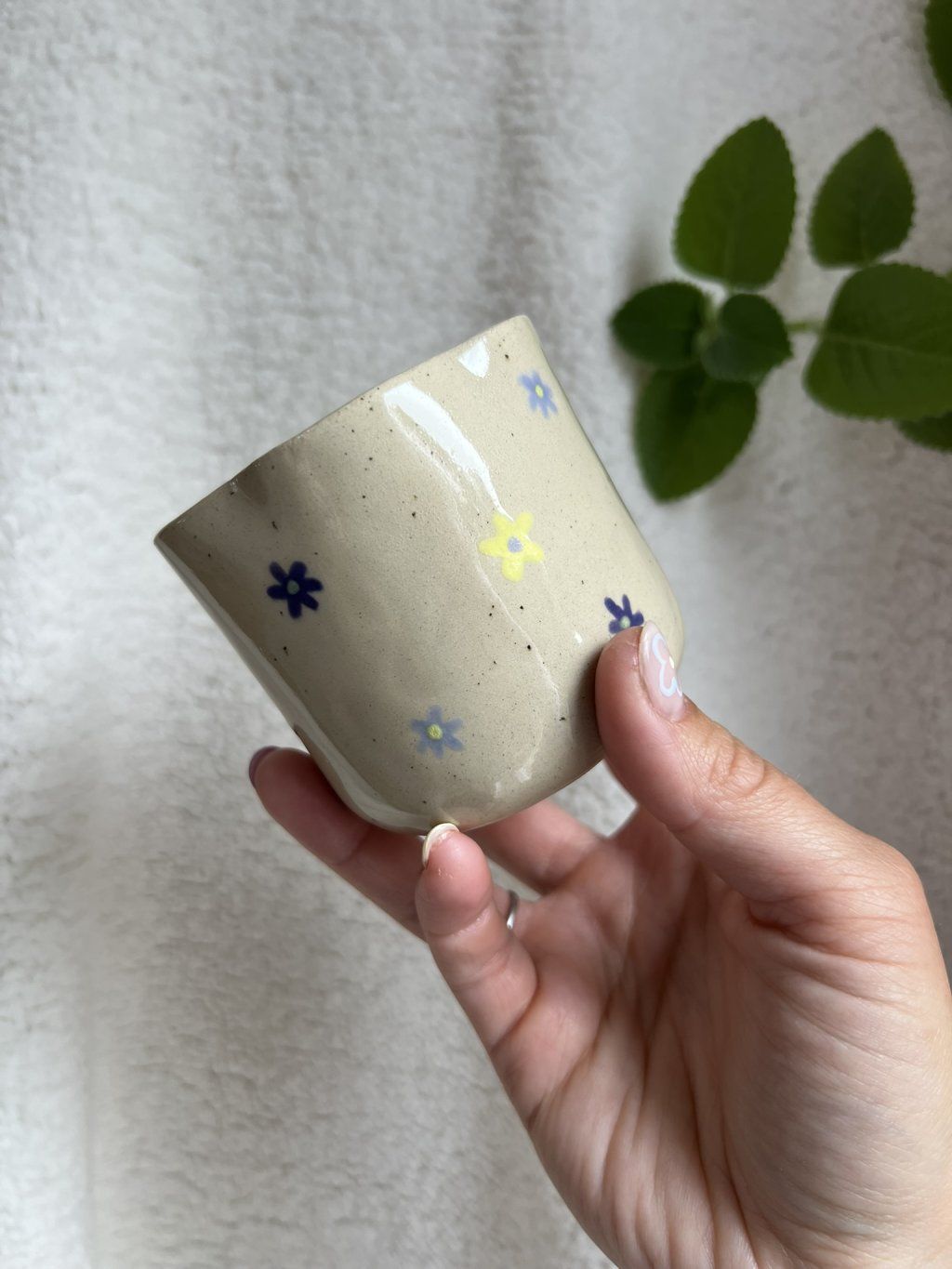 Hravý cupík s květinovým motivem, který vnese do každého dne malý kousek radosti. Je ručně tvarovaný z plátu hlíny, takže každý kus je originál a nese v sobě jedinečný otisk ruční práce. Jemné nerovnosti a drobné detaily mu dodávají přirozený, osobitý charakter. Ideální pro chvíle, kdy si chceš zpomalit a užít si svůj čaj nebo kávu trochu jinak...
