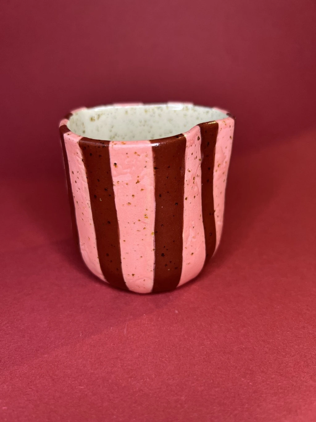 Cupík tak akorát na cappuccino. Při jeho vzniku dostala transparentní glazura trochu prostoru říct si, jak bude cupík nakonec vypadat. Na povrchu se proto mohou objevit drobné nedokonalosti – prosím věnujte pozornost fotkám.