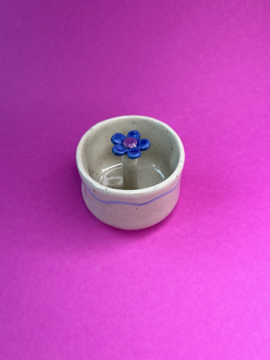 Ergo cupík, který je jediný svého druhu s kytkou Chlubilkou uprostřed.