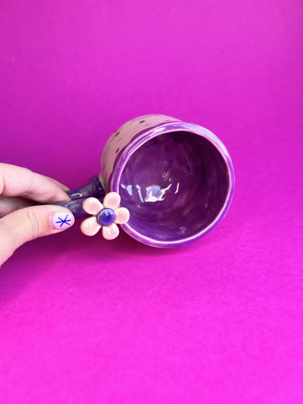 Hrníček, který vám zpříjemní den už od samého rána. Je inspirovaný květinami a barevnou kombinací růžové a fialové. Hrníček je ručně vymodelovaný z vyváleného plátu hlíny. Díky tomu na něm najdete jemné nerovnosti a nedokonalosti – a právě ty mu dodávají na osobitosti.