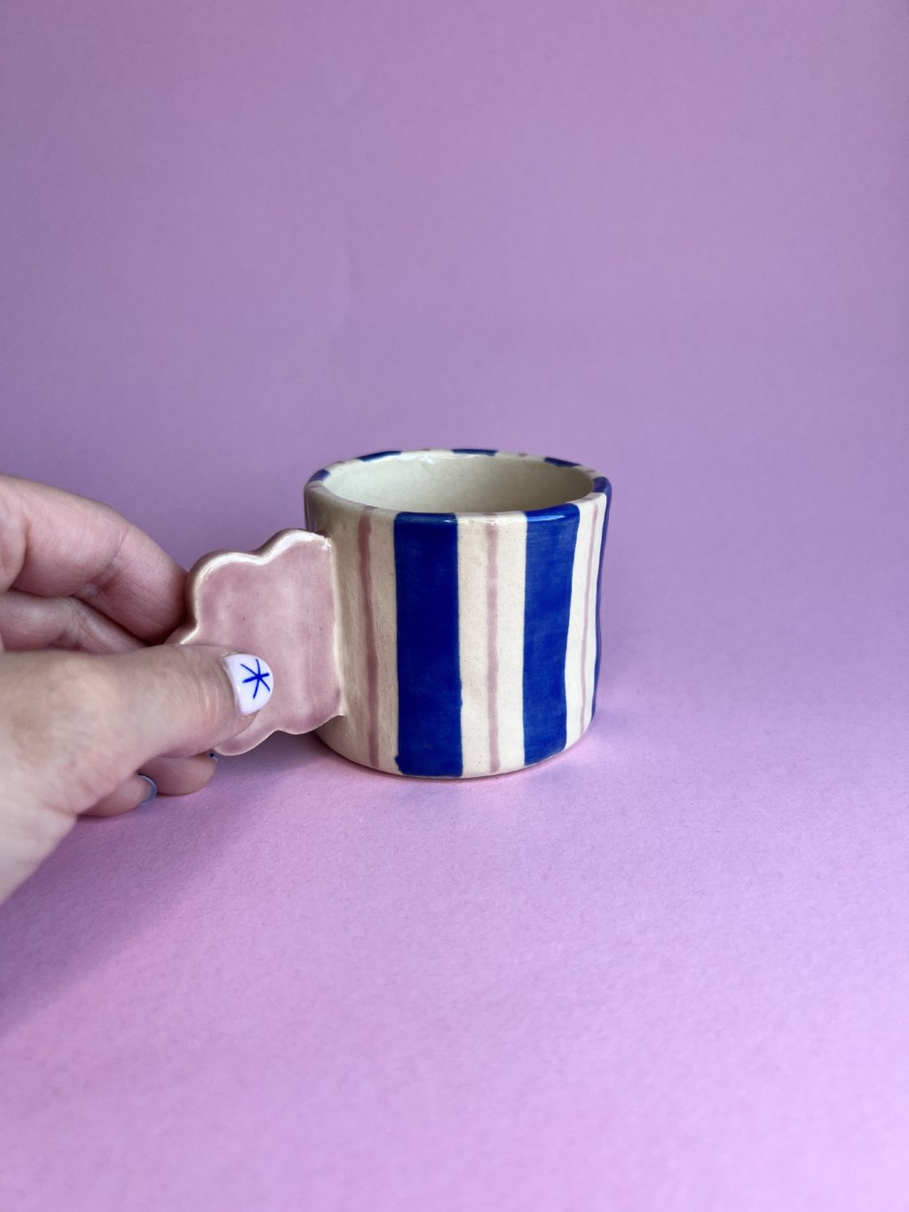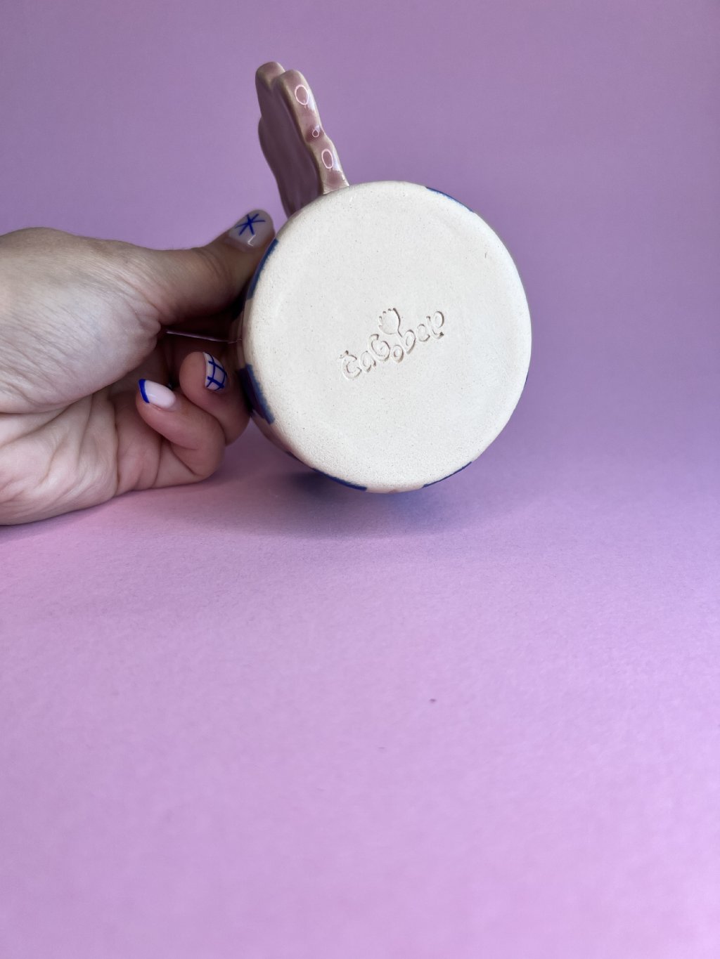 Hrníček, který vám zpříjemní den už od samého rána. Je inspirovaný květinami a barevnou kombinací růžové a modré. Hrníček je ručně vymodelovaný z vyváleného plátu hlíny. Díky tomu na něm najdete jemné nerovnosti a nedokonalosti – a právě ty mu dodávají na osobitosti.
