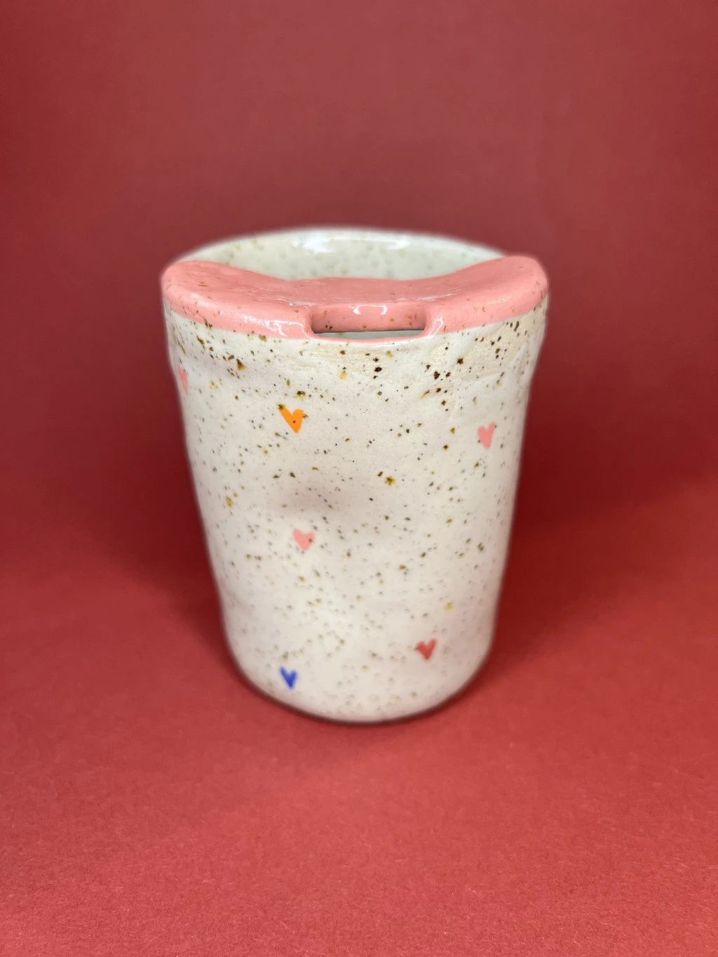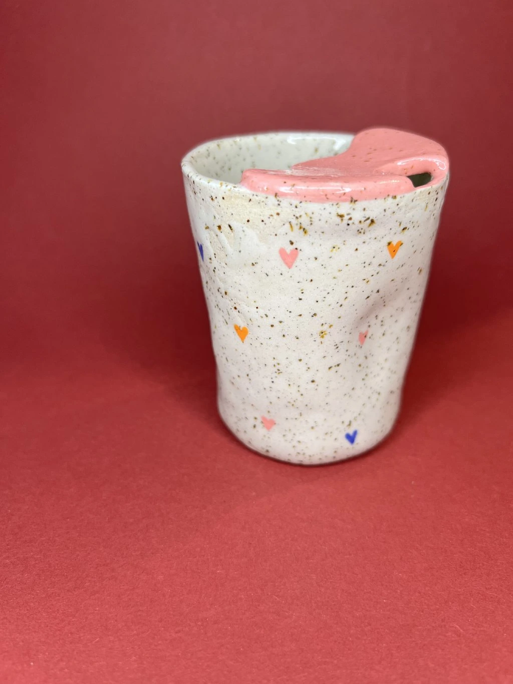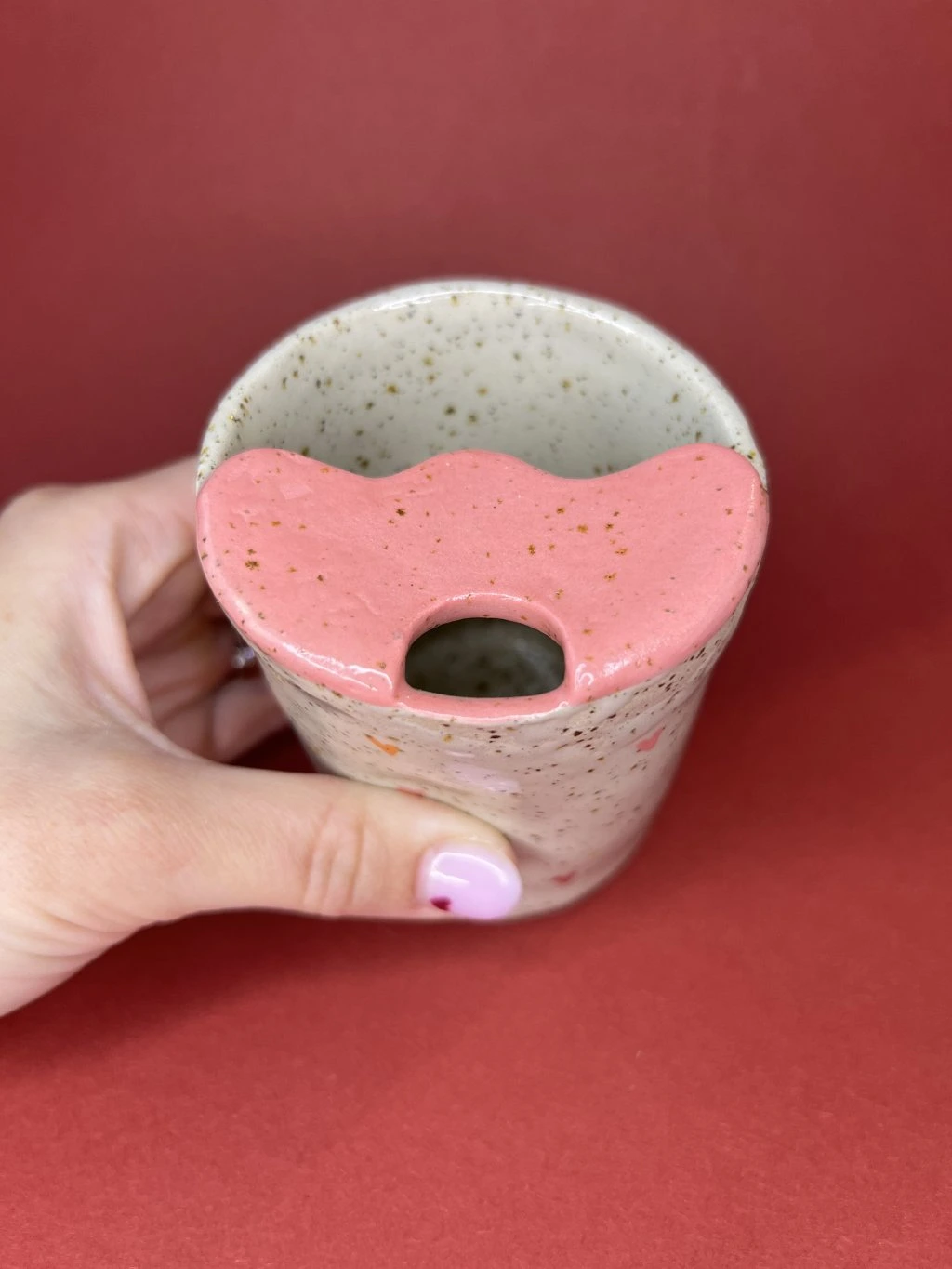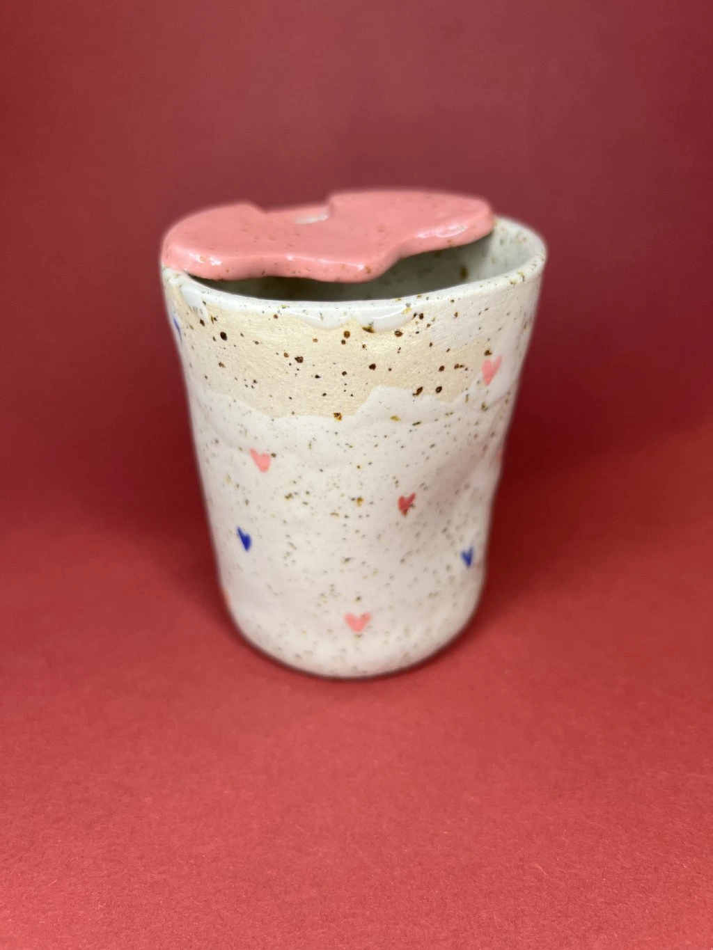Travel cup tak akorát na cappuccino. Při jeho vzniku dostala transparentní glazura trochu prostoru říct si, jak bude cupík nakonec vypadat. Na povrchu se proto mohou objevit drobné nedokonalosti – prosím věnujte pozornost fotkám.
